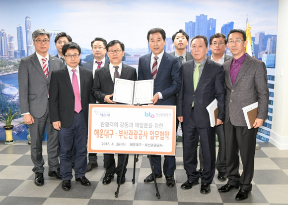 부산관광공사(사장 심정보)와 해운대구(구청장 백선기)는 26일 해운대구청에서 국내외 관광객 유치 활성화를 위한 업무협약(MOU)을 체결했다.