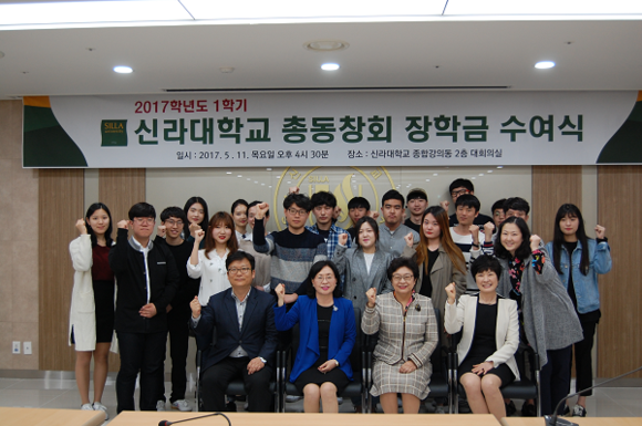 신라대 총동창회는 11일 오후 교내 60주년기념관 2층 대회의실에서 류경화 총동창회장과 이주일 생활관장 등 학내외 인사들이 참석한 가운데 2017학년도 1학기 총동창회 장학금 수여식을 가졌다.