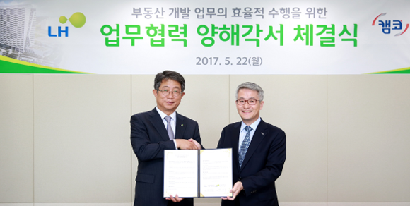 한국자산관리공사(캠코, 사장 문창용)는 한국토지주택공사(LH, 사장 박상우)와 22일 오후 경남 진주시 소재 LH공사 본사에서 '부동산 개발 업무의 효율적 수행을 위한 업무협력 양해각서'를 체결했다.