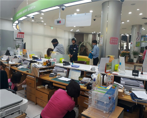 ▲부산연제우체국 현금피탈사고 예방 모의훈련 모습. (사진=부산우정청)