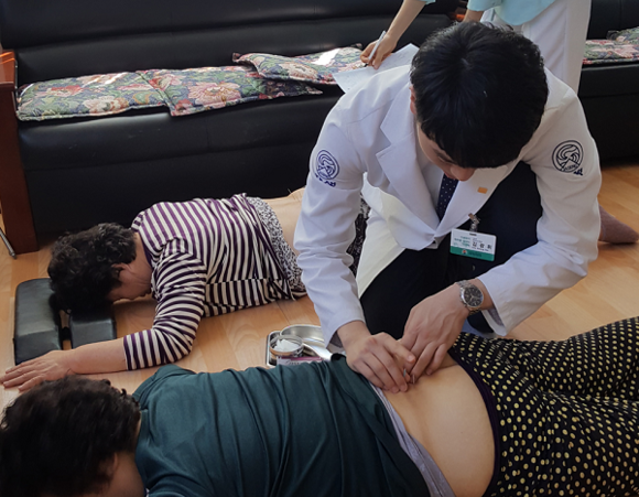 이번 의료봉사에는 해운대자생한방병원 의료진 3명이 참가했으며 평소 척추나 관절 통증을 호소하는 60세 이상의 어르신 100여명을 대상으로 침치료와 한약처방 등을 실시해 큰 호응을 얻었다.