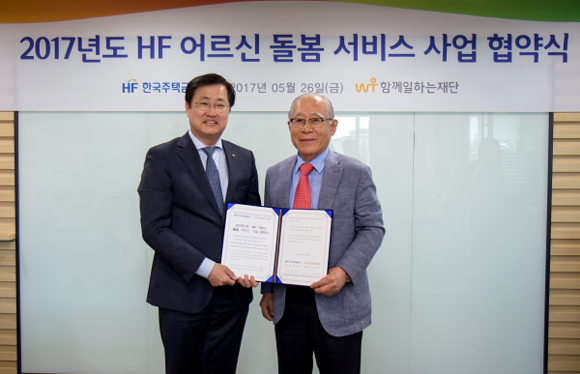 공사는 재단법인 함께일하는재단(이사장 송월주)과 '2017년도 HF 어르신 돌봄서비스' 협약을 체결했다고 26일 밝혔다.