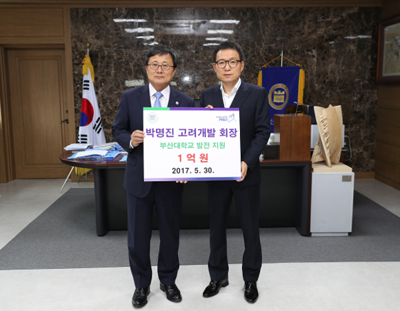 전 총장은 “박 회장님의 발전기금 1억 원은 출연해주신 목적에 맞게 의학과 법학 계열 학생들을 위하는 일에 소중히 쓰일 것이며, 장차 부산대가 글로벌 연구중심대학이 되는 데 초석이 될 것”이라고 화답했다.