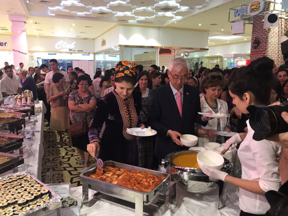 와이즈유 'K-FOOD STAR CHEF' 육성사업단(단장 강현우)은 2일 오후 5시부터 아슈가바트 대형 쇼핑몰 '베르카라'에서 해외 대사관과 함께 주재국의 외교단과 식당 운영자 등 100여명의 해외 현지인들을 대상으로 K푸드의 홍보와 체험행사를 가졌다고 7일 밝혔다.