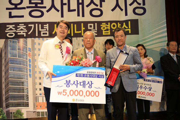 온종합병원은 8일 오후 병원 15층 국제회의장인 정근홀에서 지역민 300여명이 참석한 가운데 740병상 증축기념식과 함께 '제1회 봉사대상 시상식'을 가졌다.