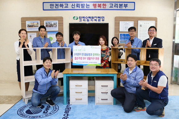 고리원자력본부 직원들로 구성된 DIY 가구 제작 동호회 '반딧불 공방'은 14일 오전 본부사옥 1층 로비에서 기장군청 관계자 등이 참석한 가운데 손수 제작한 가구를 전달하는 행사를 가졌다.