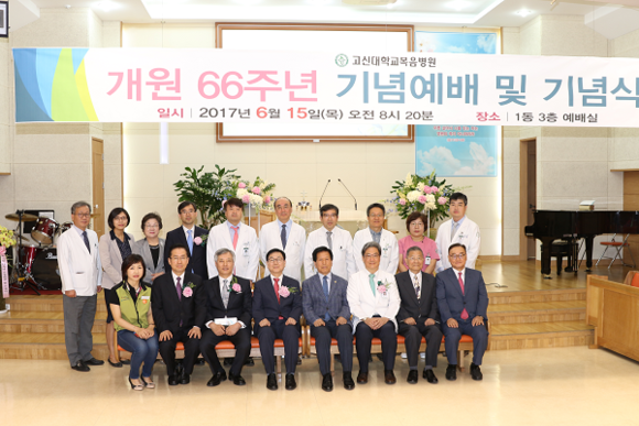 고신대복음병원(병원장 임학)은 개원 66주년(1951년 6월 21일)을 맞아 15일 오전 병원 1동 3층 예배실에서 교단 주요 인사들이 참석한 가운데 기념예배 및 기념식을 가졌다.