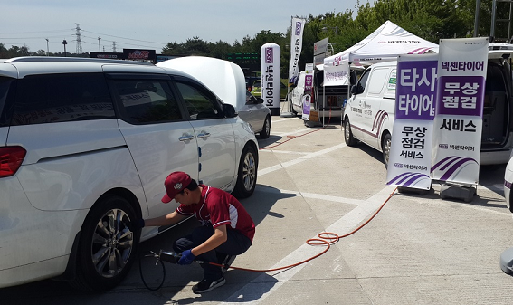 한편, 넥센타이어는 고속도로 이용 고객의 안전한 주행을 위해 올해 전국 고속도로 휴게소에서 연간으로 타이어 무상점검을 펼치고 있다.