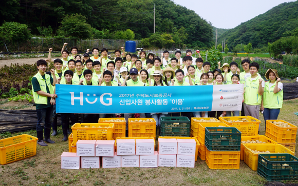 주택도시보증공사(HUG, 사장 김선덕) 신입사원 52명이 21일 부산 기장에 위치한 제세나눔농장을 찾아 농작물을 수확하는 봉사활동을 펼쳤다.