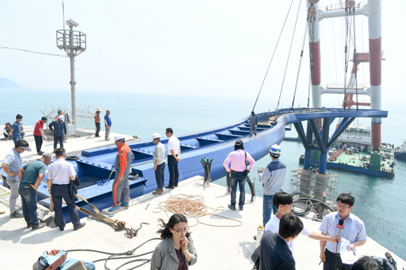전망대 상판은 길이 72.5m, 폭 3~11m, 무게는 무려 280톤이나 되는 거대한 구조물로 전남 영암에서 9개월간 제작해 해상으로 운송했다. 상판 거치 공사에는 600톤급 초대형 해상 크레인선이 사용됐다.