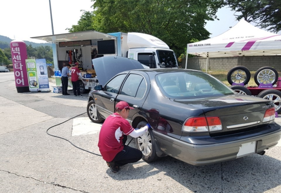타이어 관리 전문 인력과 2.5t, 3.5t의 모바일 점검 차량이 투입돼 타이어 공기압과 마모 상태 등을 확인하고, 워셔액 보충, 차량 실내 소독 등의 서비스를 무상으로 제공한다.