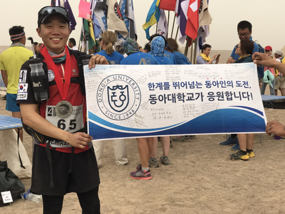 세계 4대 극한마라톤대회 중 하나인 중국 고비사막마라톤대회를 완주한 내윤한(국제관광학과 2·사진) 동아대 학생이 화제다.
