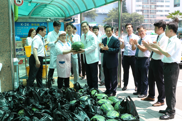 임학 병원장은 “장마와 여름나기에 지친 교직원들에게 잠시나마 여유와 재충전의 시간을 주기 위해 수박이벤트를 마련했다”며 “교직원들의 노고와 헌신에 항상 감사하며 무더운 여름을 잘 이겨내길 기원 한다”고 말했다.