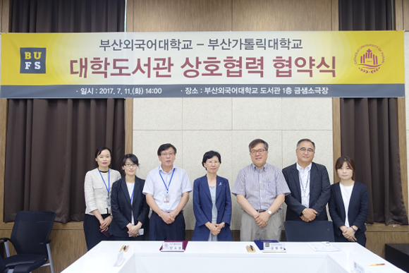 부산외대와 부산가톨릭대는 11일 부산외대 도서관 내 소극장에서 학술정보 교류 및 도서관 시설 공동 이용에 관한 '대학 도서관 상호협력 협약'을 체결했다.