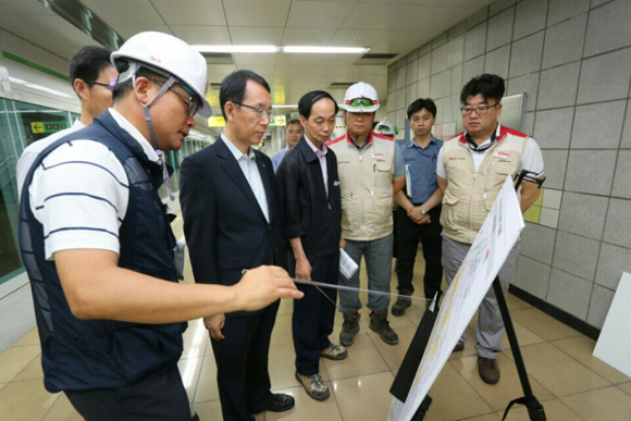 부산교통공사 박종흠 사장이 안전점검의 날을 맞아 14일 오전 11시 사상~하단 5공구를 방문, 풍수해 취약시설에 대한 안전점검을 실시하고 직원들의 안전 의식 강화를 주문했다.