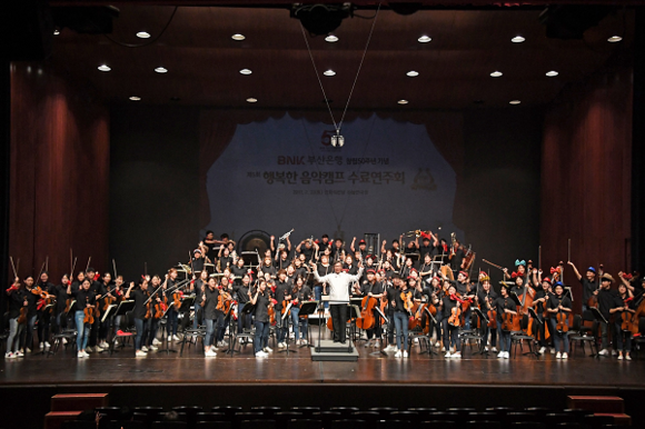 BNK금융그룹 부산은행은 22일 영화의전당 하늘연극장에서 '제5회 BNK행복한 음악캠프 수료 연주회'를 성황리에 개최했다.