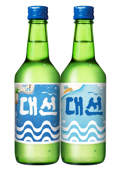 브랜드명 '대선' 로고와 갈매기, 물결 디자인을 그대로 가져와 대선블루 본연의 모습은 지키면서 시원한 바다 디자인과 조화로운 느낌을 연출했다.