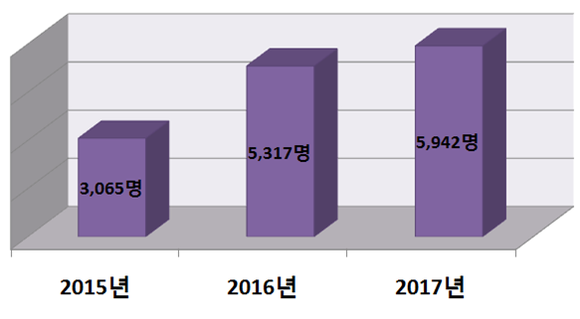 최근 3년간 상반기 가입자를 살펴보면 ▲`15년 3065명 ▲`16년 5317명 ▲`17년 5942명으로 지속적으로 증가하고 있다.