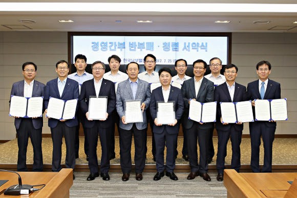 남부발전은 25일 부산 본사 35층 비전룸에서 윤종근 사장을 비롯한 모든 경영간부들이 이 같은 내용으로 반부패·청렴 서약을 시행했다고 밝혔다.