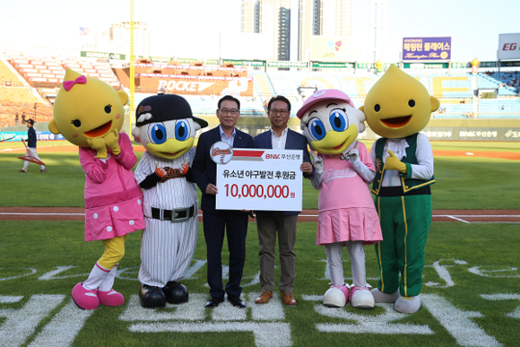부산은행은 매년 상품 수익의 일부를 유소년 야구부에 기부하고 있다.