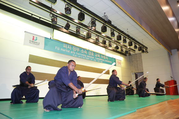 남태평양에 위치한 피지 정부의 경호원 10명은 교육생으로 인제대에서 5주간의 선진 경호 무예 교육을 무사히 마쳤다.