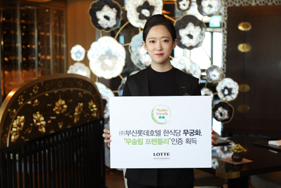 ㈜부산롯데호텔(대표이사 김성한)은 한식당 무궁화가 증가하는 무슬림 관광객에 대비해 한국관광공사의 '무슬림 프렌들리(Muslim Friendly)' 인증을 획득, 지난 4일 인증 스티커를 레스토랑에 부착했다고 7일 밝혔다.
