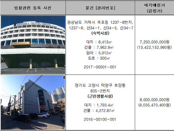 ▲주요 매각 예정 물건. (표=캠코)
