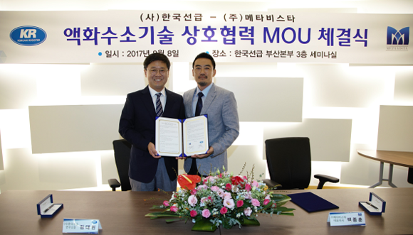 한국선급(KR, 회장 이정기)은 8일 한국선급 본사에서 ㈜메타비스타와 액화수소운송선과 수소 기술 분야의 공동 연구개발을 위한 MOU를 체결했다.