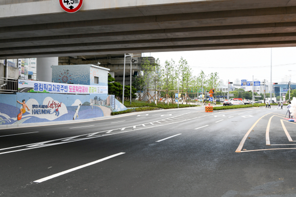 동부올림픽타운 아파트 앞 해운대로 350m 구간을 폭 33m에서 39m로 확장하고, 올림픽교차로에서 장산로로 진입하는 도로 200m 구간을 평탄화했으며, 우동고가교 하부 유휴부지에 편도 2차로도 신설했다.