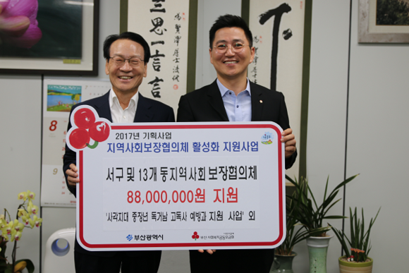 부산 서구(구청장 박극제)가 부산사회복지공동모금회에서 실시한 '지역사회보장협의체 활성화를 위한 민관협력사업' 공모에 선정돼 총 8800만 원의 사업비를 지원받았다.