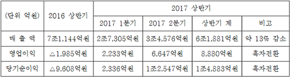▲대우조선해양 상반기 실적. (표=대우조선해양)