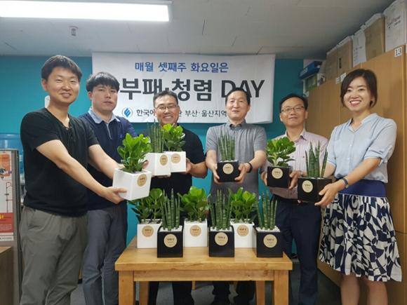 한국에너지공단 부산울산지역본부(본부장 이철우)는 17일 청렴문화 확산과 내부청렴도 향상을 위해 청렴문구가 표시된 '청렴화분'을 만들어 각 사무실에 비치했다고 밝혔다.