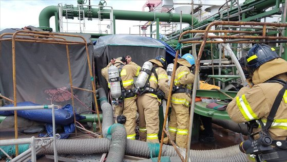 ▲20일 오전 경남 창원 STX조선해양에서 폭발사고가 발생해 이 회사 하청업체 소속 근로자 4명이 숨졌다. (사진=창원소방본부)