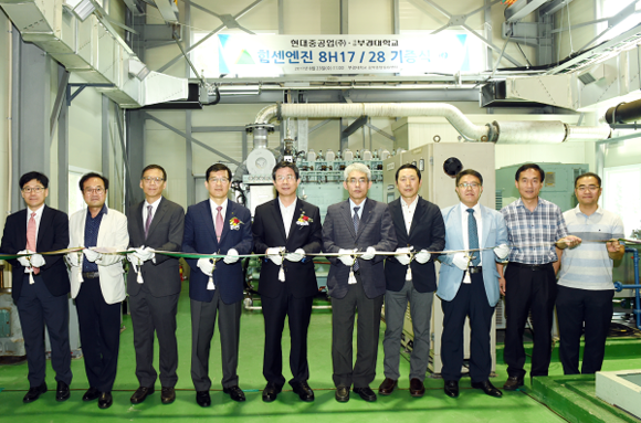 현대중공업이 독자 개발한 선박용 엔진 '힘센엔진(8H17/28)'을 부경대에 기증하고 23일 오전 부경대 용당캠퍼스 공학종합실습센터 내연기관실험실습실에서 기증식을 가졌다.
