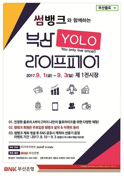 BNK금융그룹 부산은행은 지역 내 전시박람회 스타트업 업체인 ㈜마루컨벤션과 공동으로 모바일뱅크 '썸뱅크'를 활용한 '부산 YOLO 라이프페어 with 썸뱅크'를 개최한다고 24일 밝혔다.