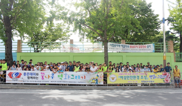 이번 벽화 그리기 활동에는 무학 강민철 대표이사, 창원중부경찰서 박금태 생활안전과장을 비롯한 좋은데이 자원봉사단, 창원중부경찰서, 학교 관계자 및 하늘벽화 봉사단 80여 명이 참석한 가운데 쾌적한 성주초 통학로 담장 150m에 꿈과 희망을 담은 벽화가 그려졌다.