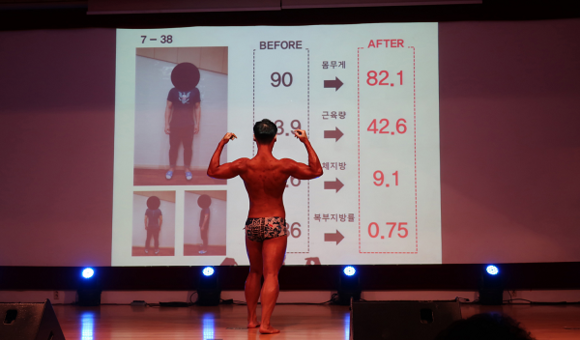 이번 행사는 ▲인바디 측정치 변화도 40점 ▲포징 및 퍼포먼스 40점 ▲비포/애프터 사진 비교 20점을 가지고 3명의 전문 헬스 트레이너가 심사를 맡았다. 남성부 대상에는 체중 9kg을 감량하고 멋진 무대를 보여준 영업부의 남성민 주임이 선정됐고, 여성부 대상에는 체지방을 무려 10kg이나 감량한 체험관 최민화 팀장이 수상했다.