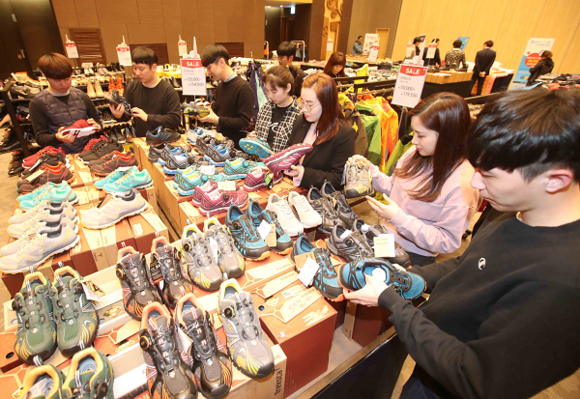 ▲지난 3월 롯데백화점 광복점 10층 문화홀에서 열린 부산지역 상생 페스티벌 행사에서 고객들이 살펴보고 있다. (사진=롯데백화점)
