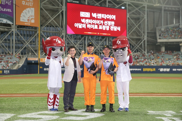 지난 3일 고척스카이돔에서 열린 2017 타이어뱅크 KBO리그 넥센히어로즈와 기아타이거즈 경기에서 서울시 소방재난본부 용산소방서 소속 김성수(43) 소방위와 최길수(34) 소방교를 '이 달의 히어로'로 선정해 시구, 시타자로 초청했다.