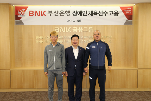 BNK금융그룹 부산은행이 장애인 일자리 창출과 우수 선수 육성을 위해 장애인 육상선수 2명을 채용했다.