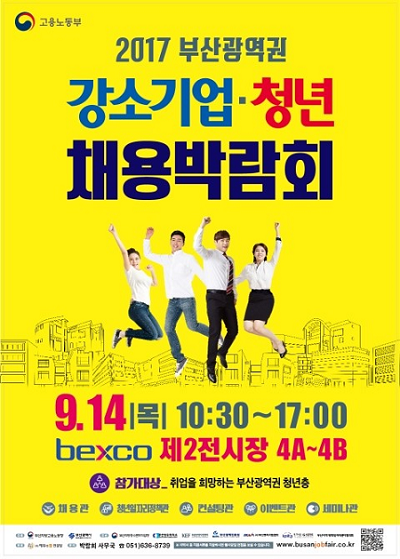 '2017 부산광역권 강소기업 청년 채용박람회'가 오는 14일 해운대 벡스코 제2전시장에서 열린다.