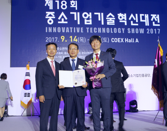 한국동서발전(사장 직무대행 박희성)이 14일 코엑스에서 열린 '제18회 기술혁신대전'에서 구매조건부 신제품개발사업 및 민관공동투자 기술개발사업 우수과제 발굴에 대한 공로를 인정받아 'R&D 우수기관 중소벤처기업부 장관상'을 수상했다.