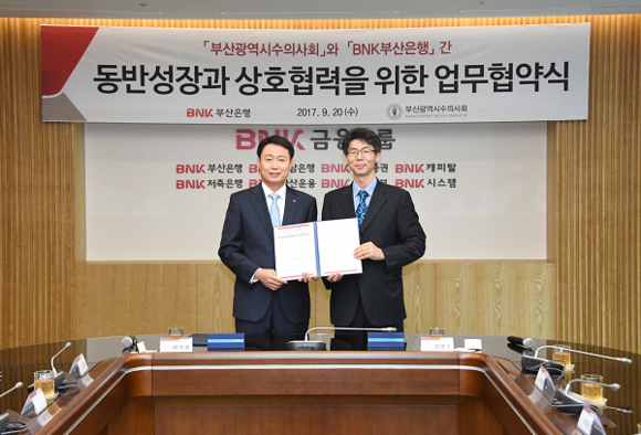 BNK금융그룹 부산은행(은행장 빈대인)은 20일 오후 본점에서 부산시 수의사회(회장 천병훈)와 '동반성장과 상호협력을 위한 업무협약식'을 가졌다.