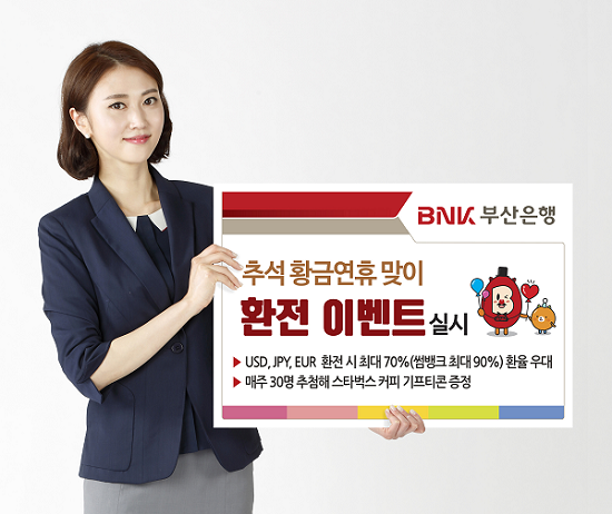 BNK금융그룹 부산은행(은행장 빈대인)은 추석 황금연휴를 맞아 해외여행 고객을 위한 환전 이벤트를 내달 31일까지 실시한다고 21일 밝혔다.