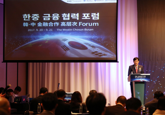 한국예탁결제원(사장 이병래)은 20, 21일 양일에 걸쳐 부산 웨스틴조선호텔에서 중국 사회과학원 국가금융발전실험실(이사장 리양), 부산시, 부산경제진흥원과 공동주관으로 '2017 한·중 금융협력 포럼'을 성황리에 개최했다.