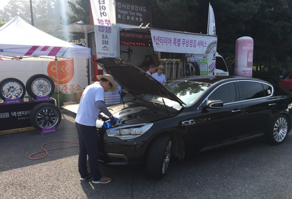 타이어 관리 전문 인력과 2.5t, 3.5t의 모바일 점검 차량이 투입돼 타이어 공기압과 마모 상태 등을 확인하고, 워셔액 보충, 차량 실내 소독 등의 서비스를 무상으로 제공한다.