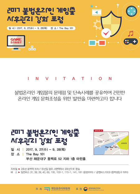게임물관리위원회(위원장 여명숙)는 오는 27일 오전 11시 해운대에 위치한 더베이101에서 '불법온라인게임물 사후관리 강화 포럼'을 개최한다.