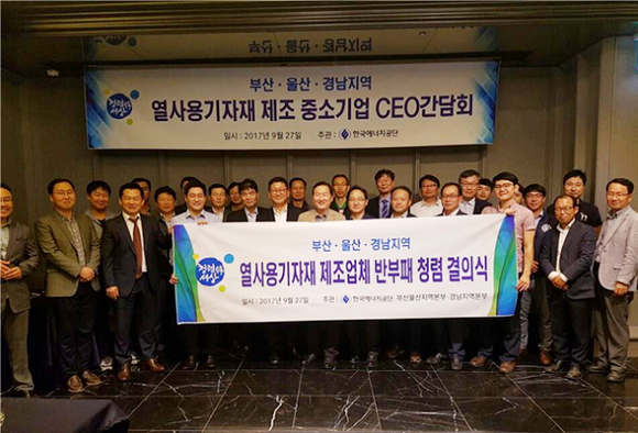 한국에너지공단 부산울산지역본부(본부장 이철우)는 27일 해운대센텀호텔에서 부산·울산·경남 지역 열사용기자재 제조 중소기업 30곳의 CEO를 초청해 간담회를 가졌다.