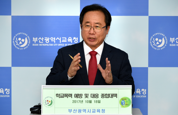 김석준 부산시교육감은 18일 오후 시교육청 기자실에서 기자회견을 갖고 지난 9월 1일 발생한 여중생 폭력사건과 관련한 '학교폭력 대응 및 위기학생 관리 종합대책'을 발표했다.