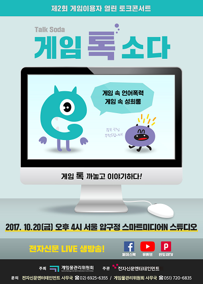 이번 토크콘서트에는 최근 지나친 욕설, 명혜훼손, 성(SEX)비하 발언 등 게임 내 에티켓(etiquette)에 대한 사회적 문제의 심각성에 대해 함께 공감하고 이를 해결하기 위한 방안에 대해 논의할 예정이다.